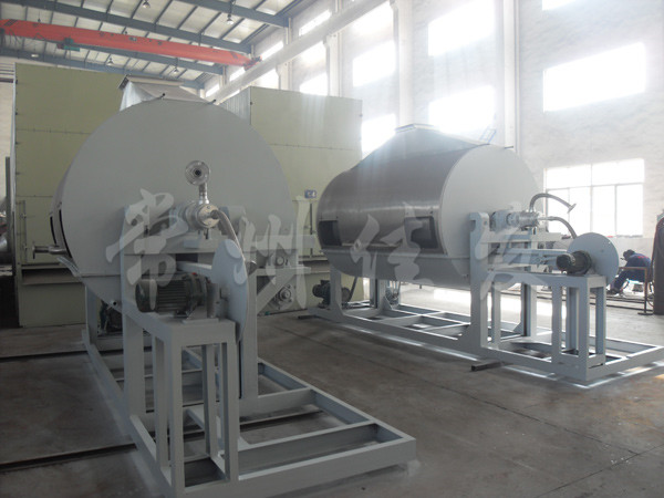 利用刮刀把產(chǎn)品刮下來(lái),露出滾筒表面再次與原料接觸形成薄膜進(jìn)行干燥。